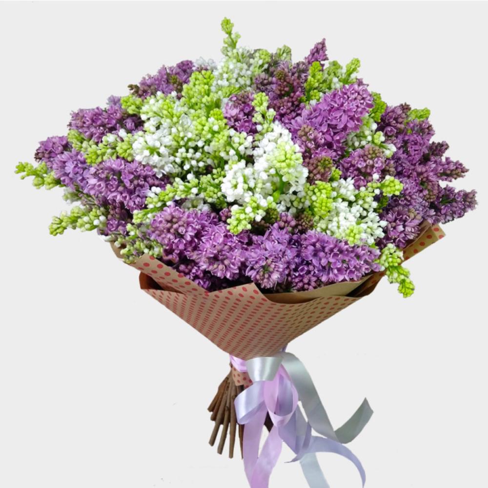 Букет из 15 веток белой и сиреневой сирени