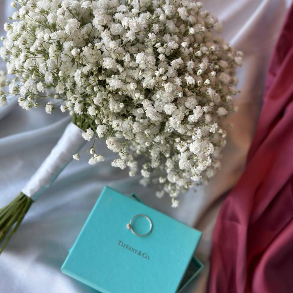 Лента атлас – 1 шт.гипсофила белая – 11 шт.