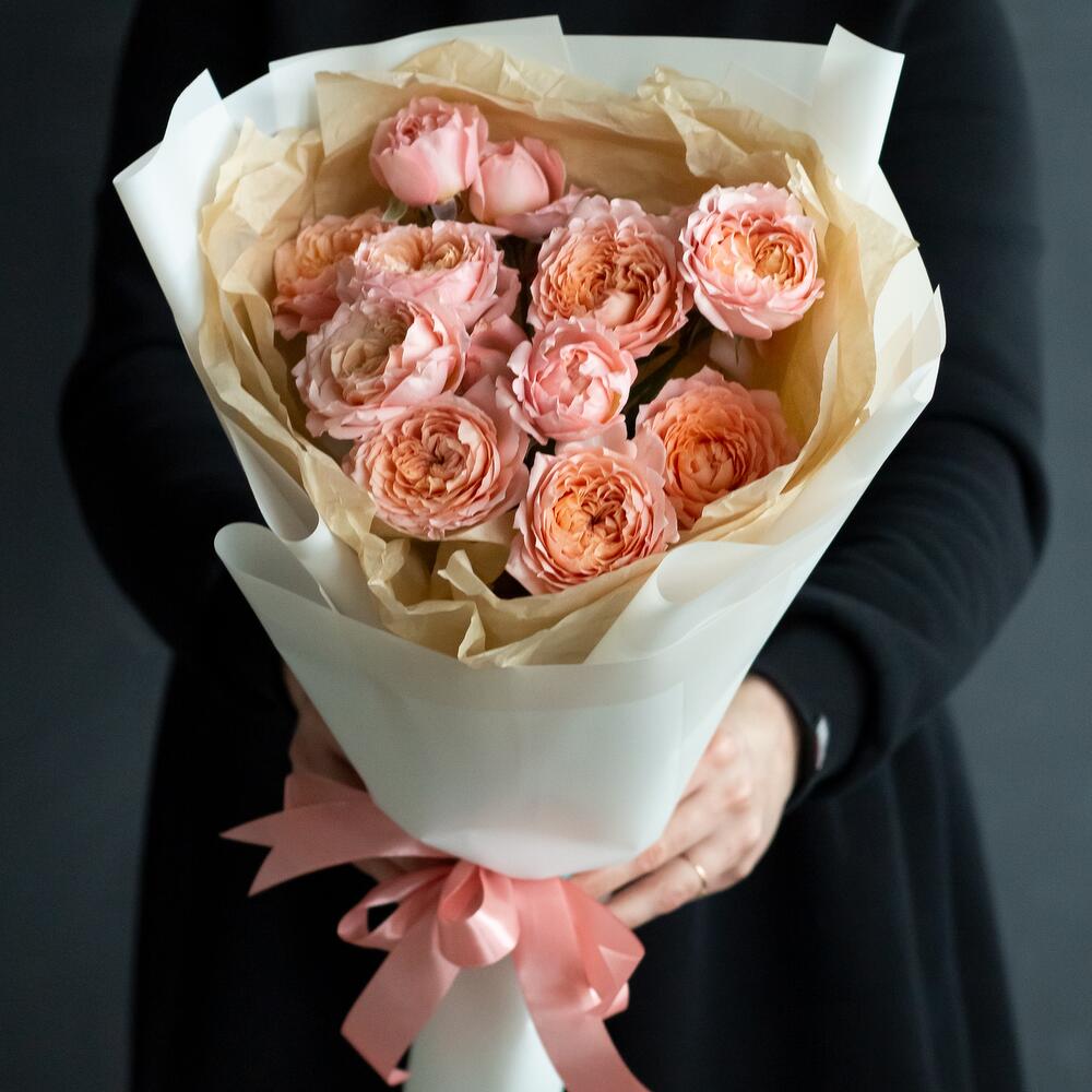 Небольшой монобукет пионовидных кустовых роз сорта Джульетта