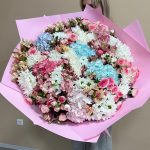Альстромерии, Гортензии, Кустовые розы, Лизиантусы, Розы, Хризантемы