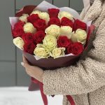 Микс красных и белых роз в оформлении!